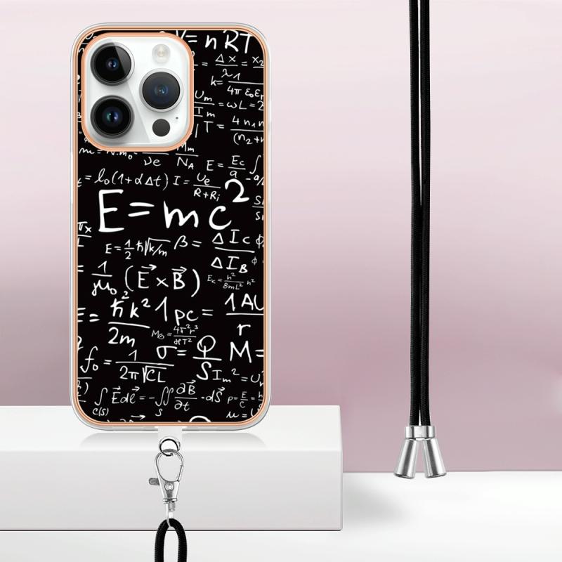 For iPhone 16 Pro Max Electroplating Dual-side IMD Phone Case with Lanyard(Equation)
