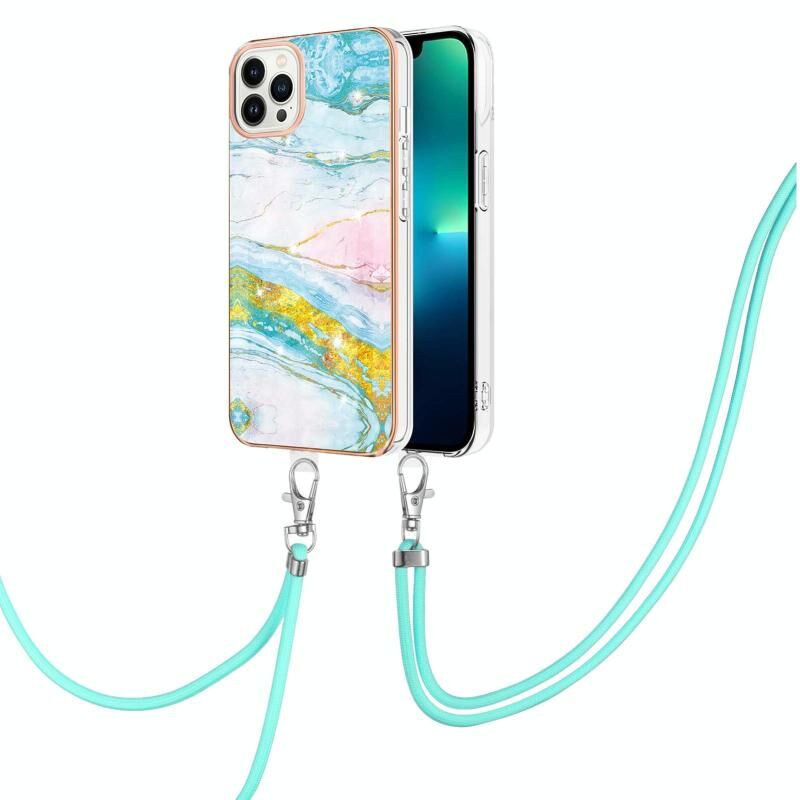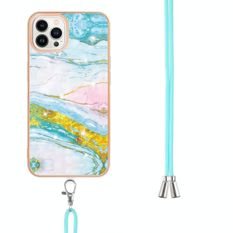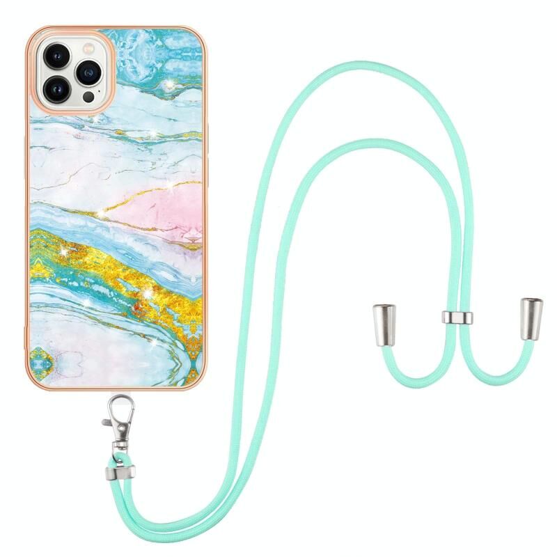 Θήκη τηλεφώνου με επιμετάλλωση, μαρμάρινη, διπλής όψης IMD για iPhone 16 Pro Max με κορδόνι (Μωβ 001)