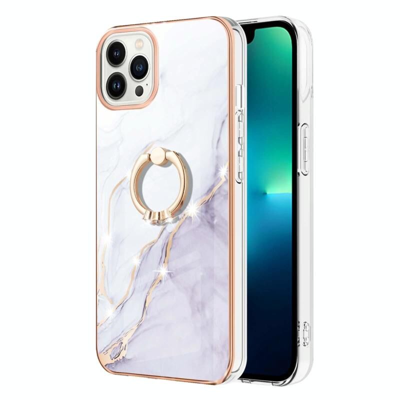 Θήκη τηλεφώνου για iPhone 16 Pro Max με ηλεκτρολυτική επικάλυψη, σχέδιο μάρμαρου IMD, από TPU με δακτύλιο στήριξης (Λευκό 006)