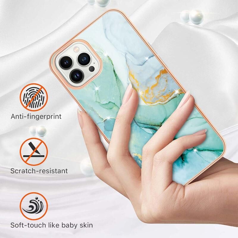 Θήκη κινητού τηλεφώνου για iPhone 16 Pro Max με ηλεκτρολυτική μαρμάρινη υφή, διπλής όψης IMD TPU, αντικραδασμική (Μωβ 002)