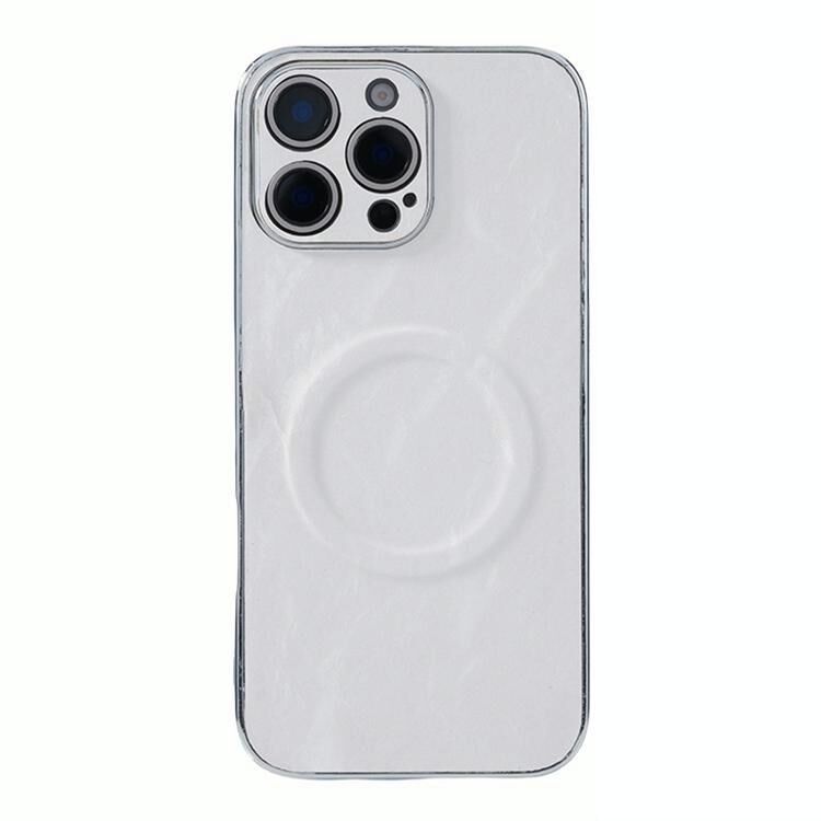 For iPhone 16 Pro Max Electroplating PC Snow Bark Texture MagSafe Phone Case(White)
