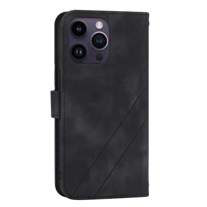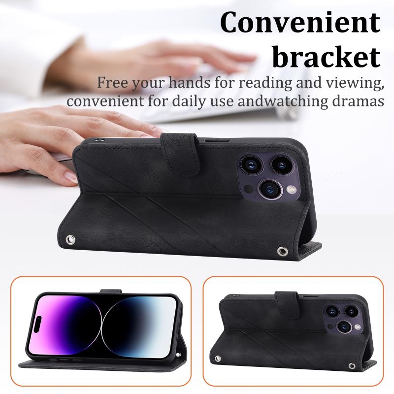 For iPhone 16 Pro Max Embossed Line Leather Phone Case with Lanyard(Black)