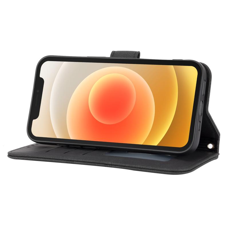 For iPhone 16 Pro Max Embossed Stripes Skin Feel Leather Phone Case(Black)