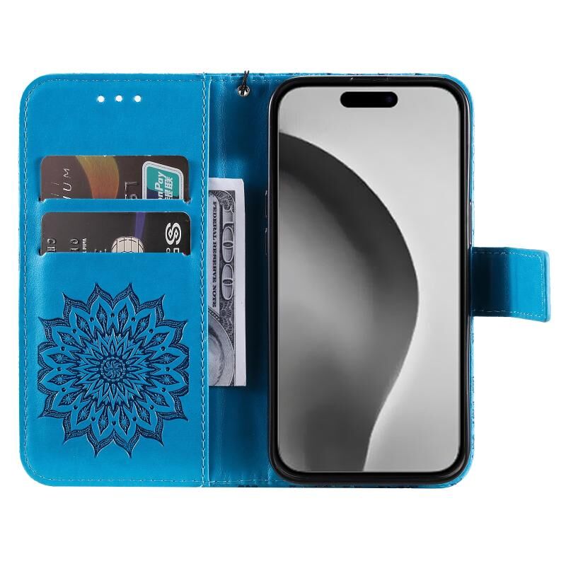 Θήκη τηλεφώνου από δέρμα με σχέδιο ηλιοτροπίου σε ανάγλυφο για iPhone 16 Pro Max (Καφέ)