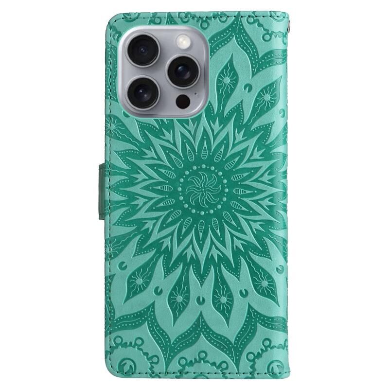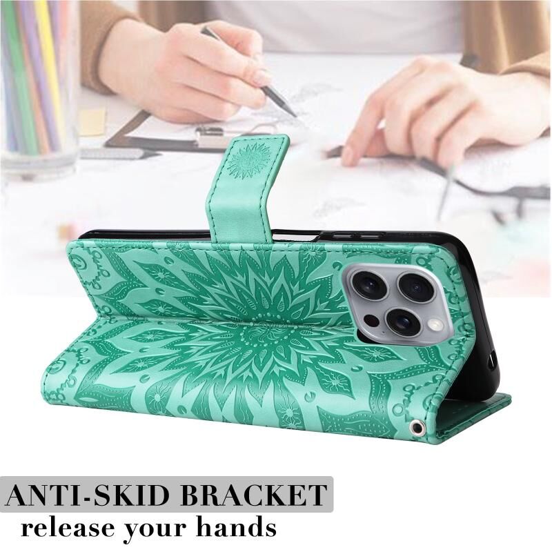 Θήκη τηλεφώνου από δέρμα με σχέδιο ηλιοτροπίου σε ανάγλυφο για iPhone 16 Pro Max (Καφέ)