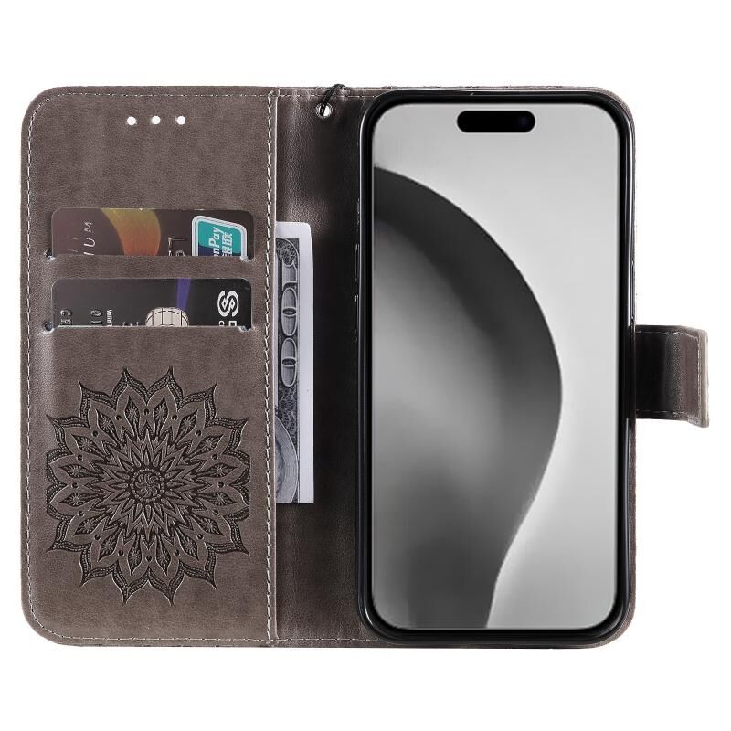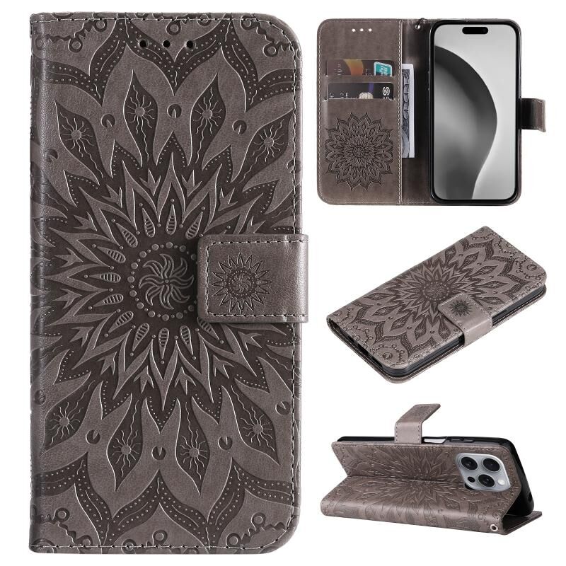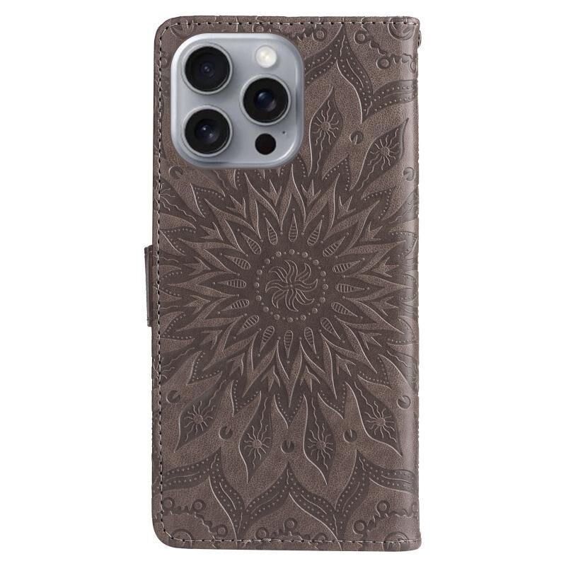 Θήκη τηλεφώνου από δέρμα με σχέδιο ηλιοτροπίου σε ανάγλυφο για iPhone 16 Pro Max (Καφέ)