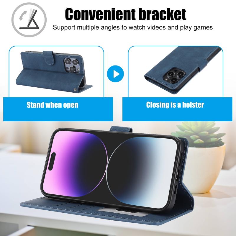 Θήκη τηλεφώνου από δέρμα μοσχαριού με υφή που θυμίζει φαντασία για iPhone 16 Pro Max (Μπλε)