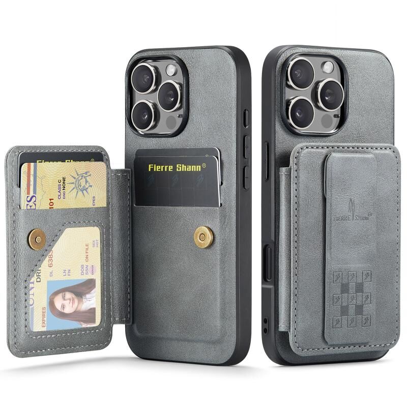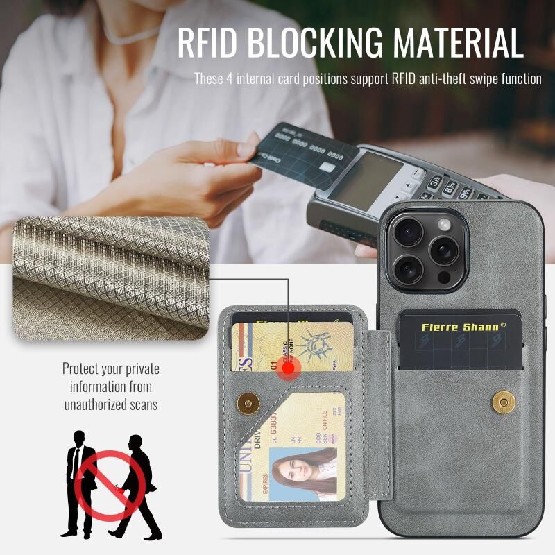 Θήκη κινητού τηλεφώνου για iPhone 16 Pro Max Fierre Shann από δέρμα αγελάδας με κερί λαδιού και θήκη για κάρτες (Πράσινο) (FIERRE SHANN)