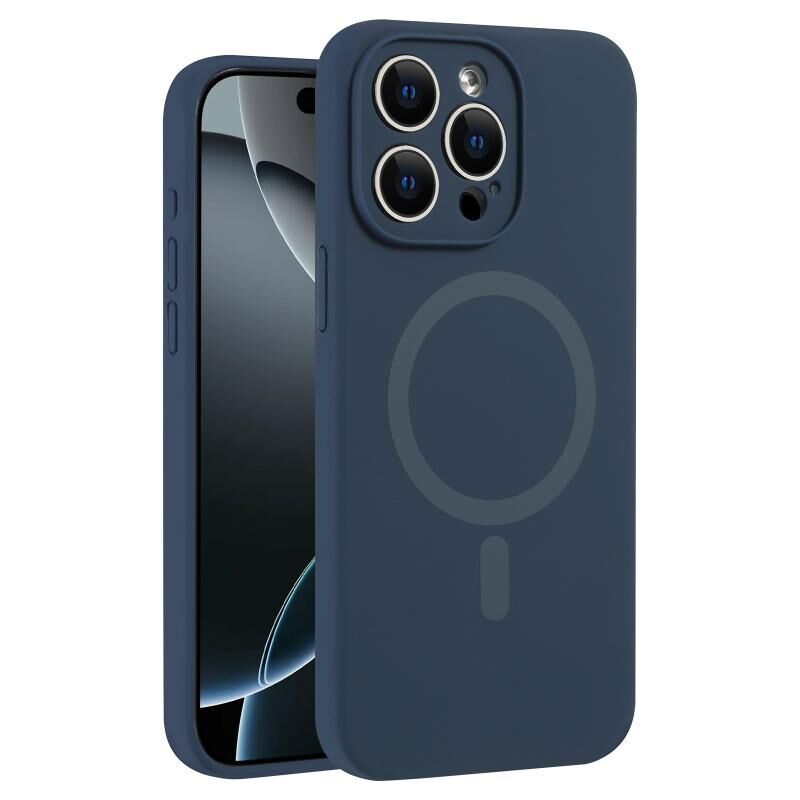 For iPhone 16 Pro Max Fine Hole Pure Color Liquid Silicone MagSafe Phone Case(Navy Blue)