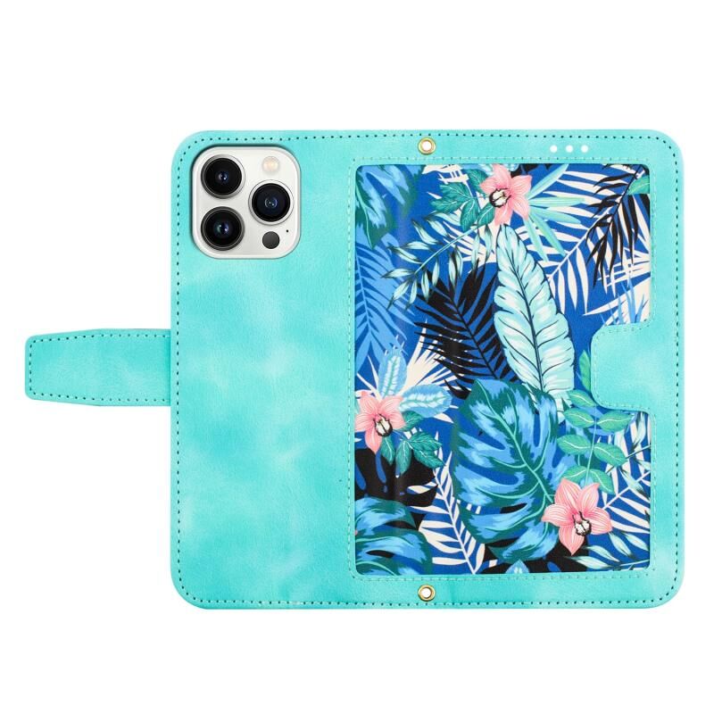 Θήκη τηλεφώνου από δέρμα με λουλουδάτο σχέδιο για iPhone 16 Pro Max με κορδόνι (Πράσινο)