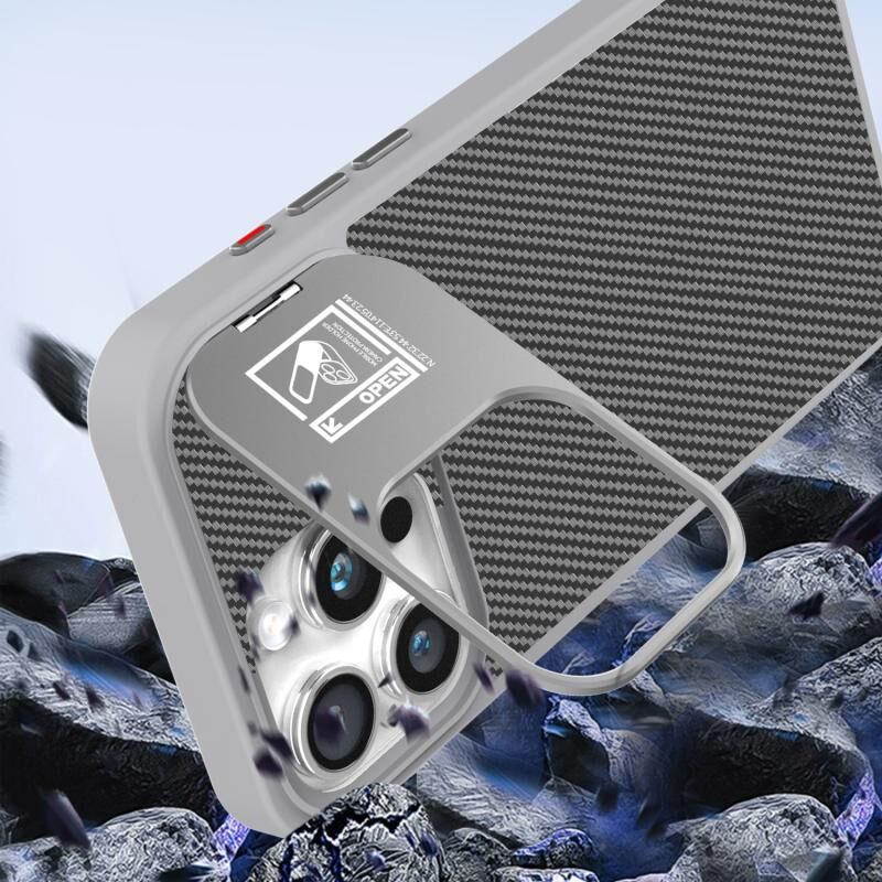 For iPhone 16 Pro Max Folding Holder Carbon Fiber MagSafe Phone Case(Gold)