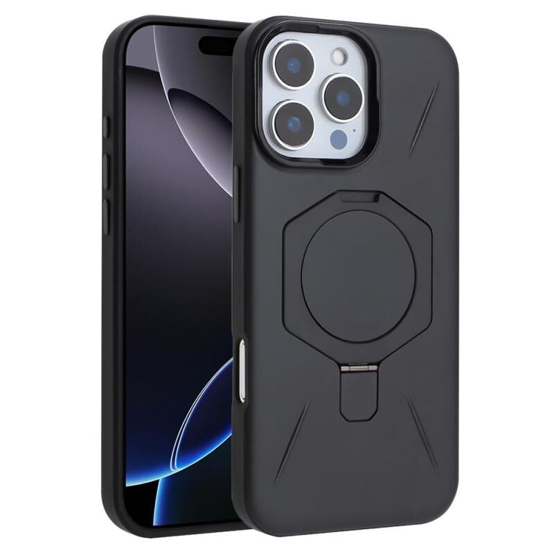 For iPhone 16 Pro Max Four-Corner Shockproof MagSafe Holder TPU Hybrid PC Phone Case(Black)