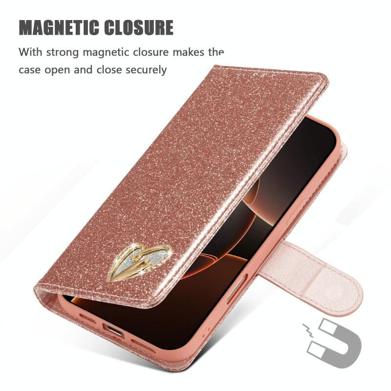 Θήκη τηλεφώνου από δέρμα με λάμψη και σκόνη γκλίτερ για iPhone 16 Pro Max (Μαύρο)