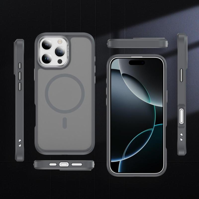 For iPhone 16 Pro Max Hardware Lens Protection MagSafe Magnetic PC Hybrid TPU Phone Case(Grey)