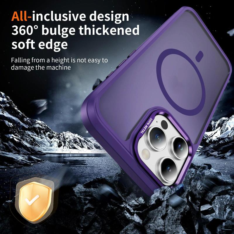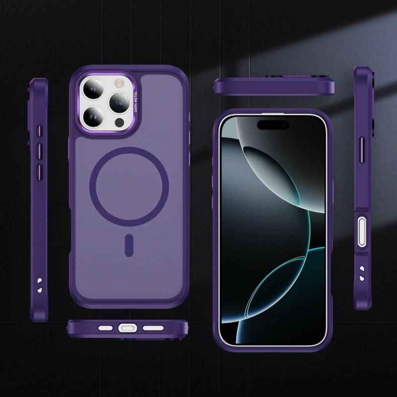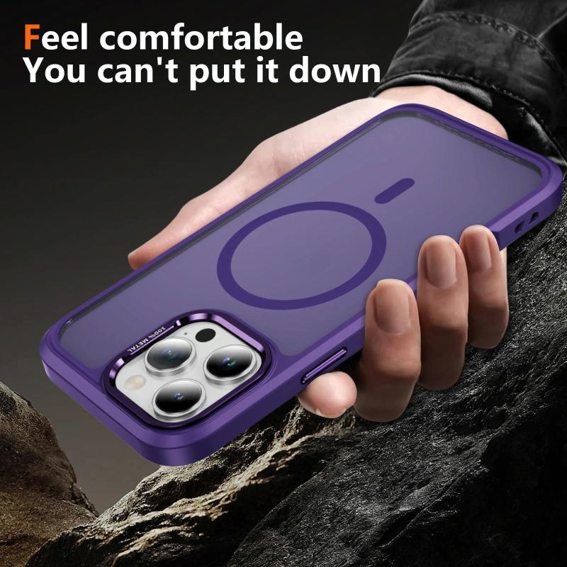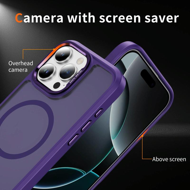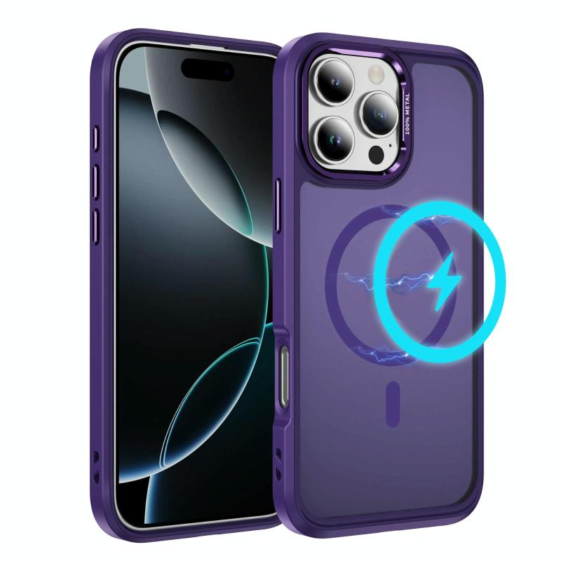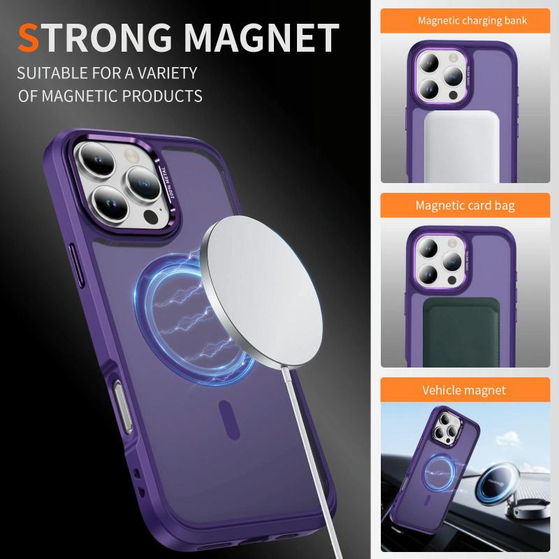 For iPhone 16 Pro Max Hardware Lens Protection MagSafe Magnetic PC Hybrid TPU Phone Case(Purple)
