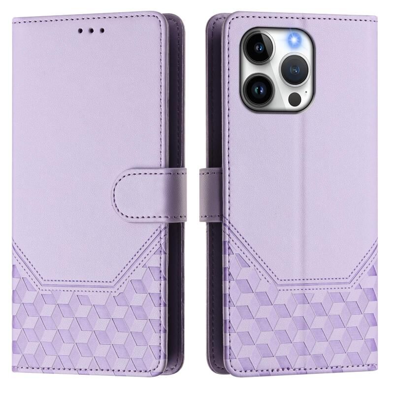 Θήκη τηλεφώνου από δέρμα με ανάγλυφο κηρήθρας για iPhone 16 Pro Max (Ανοιχτό Μωβ)