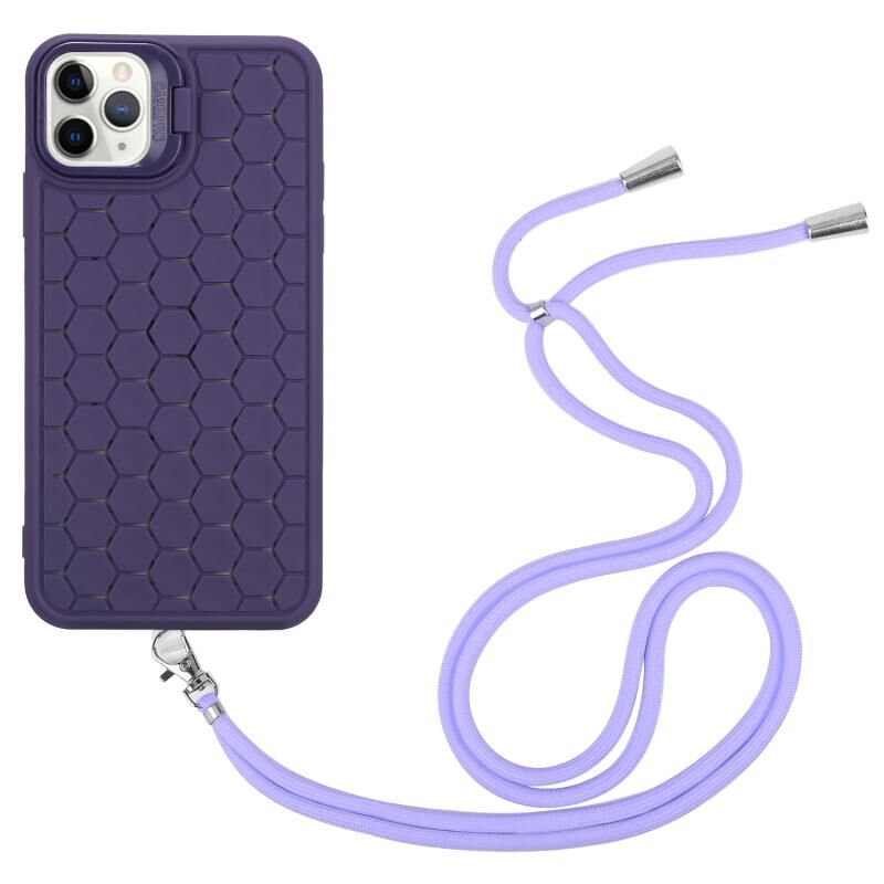 Θήκη κινητού τηλεφώνου TPU για iPhone 16 Pro Max με σχέδιο κυψελωτού και λουρί (Μωβ)