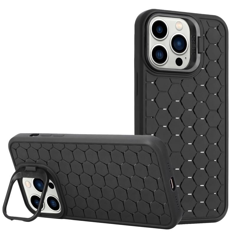 Θήκη τηλεφώνου TPU για iPhone 16 Pro Max με βάση φακού τύπου κυψέλης, ακτινωτή (Μαύρο)