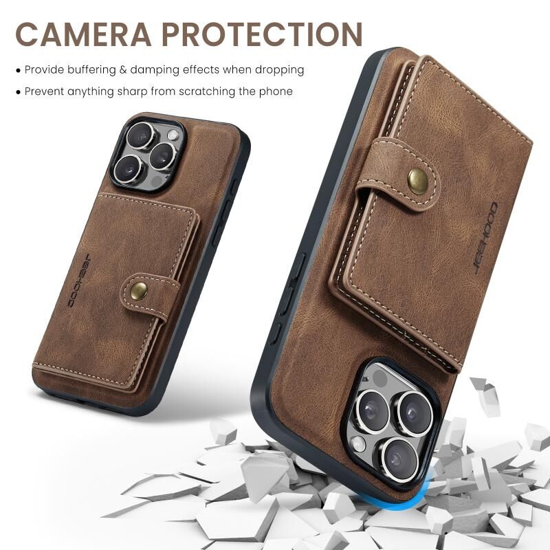 For iPhone 16 Pro Max JEEHOOD J01 Retro Magnetic Detachable Wallet Phone Case(Brown) (JEEHOOD)