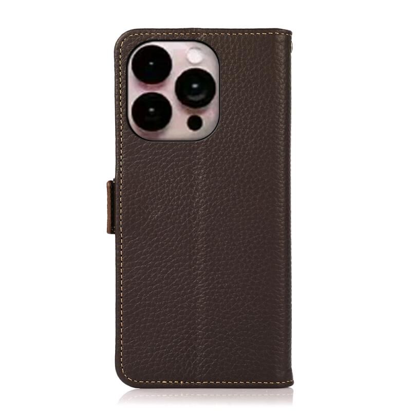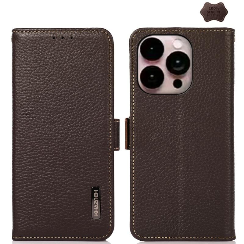 Θήκη KHAZNEH Side-Magnetic Litchi από γνήσιο δέρμα RFID για iPhone 16 Pro Max (Μπλε)