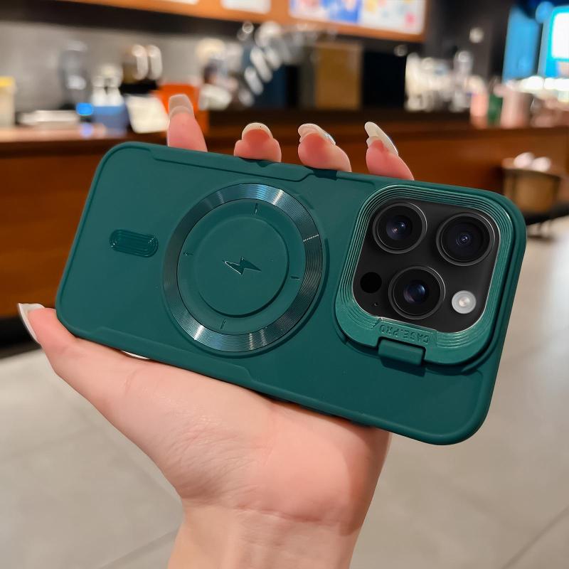 For iPhone 16 Pro Max Lens Frame Holder Blade MagSafe Phone Case(Deep Green)