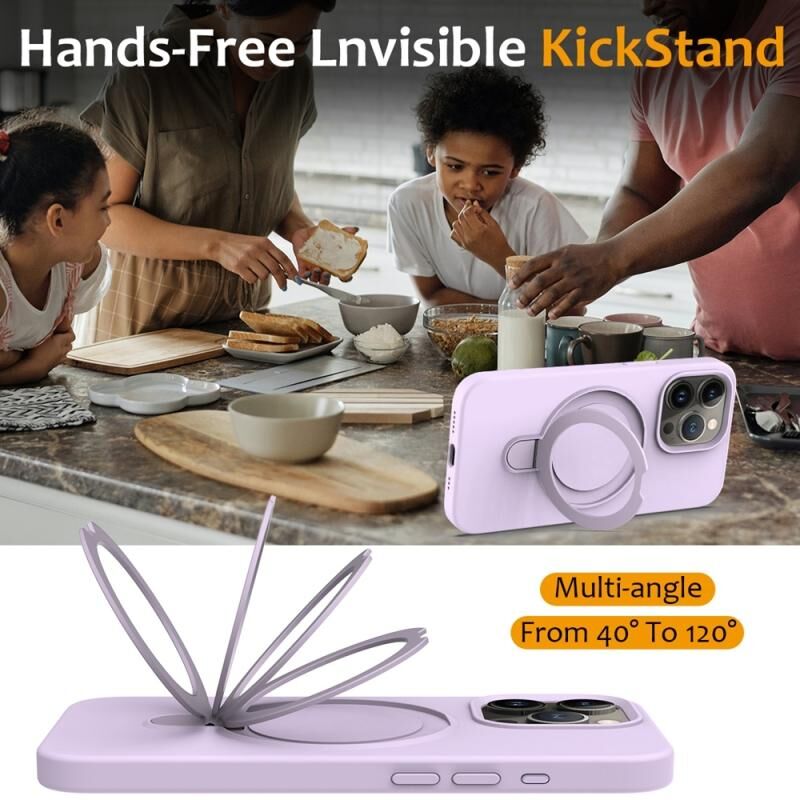 Θήκη τηλεφώνου με μαγνητική σύνδεση MagSafe από υγρή σιλικόνη για iPhone 16 Pro Max με δακτύλιο στήριξης (Λιλά Μωβ)