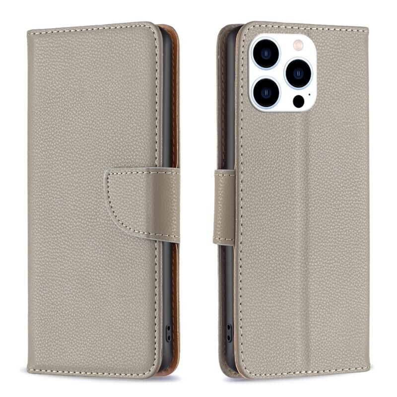 Θήκη τηλεφώνου από δέρμα με ανάγλυφη υφή Litchi και καθαρό χρώμα, τύπου flip, για iPhone 16 Pro Max (Γκρι)