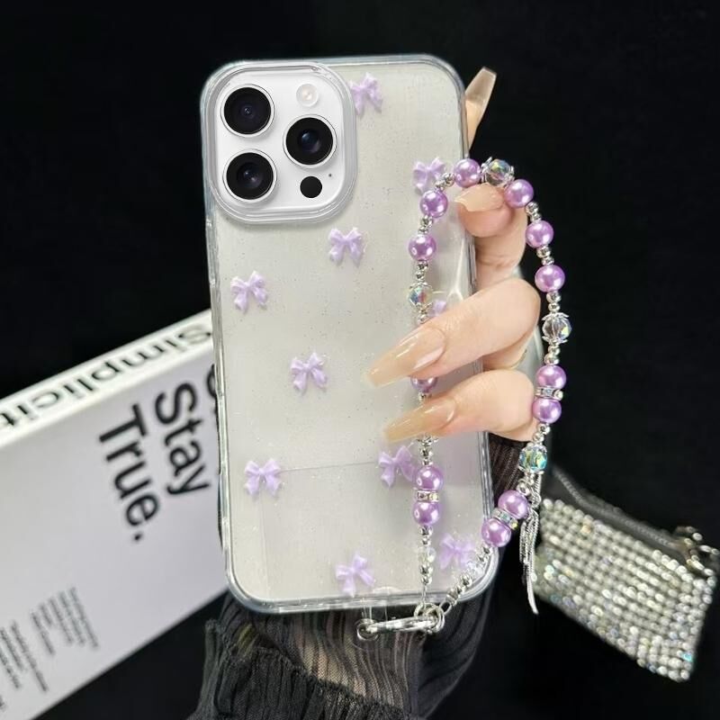 Θήκη τηλεφώνου TPU με αλυσίδα βραχιολιού και φιόγκο για iPhone 16 Pro Max (Μαύρο)
