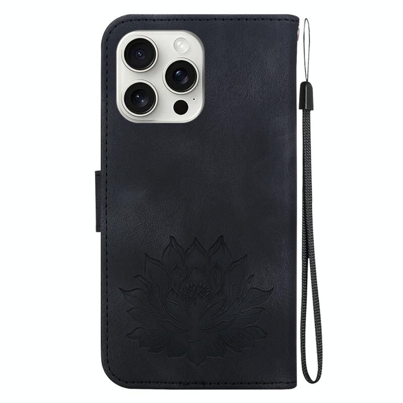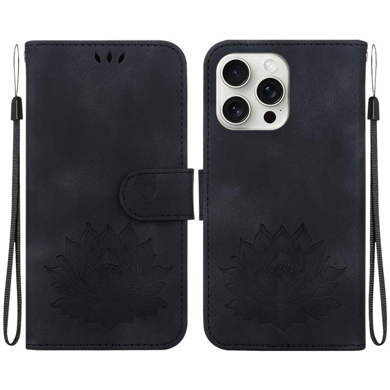 For iPhone 16 Pro Max Lotus Embossed Leather Phone Case(Black)