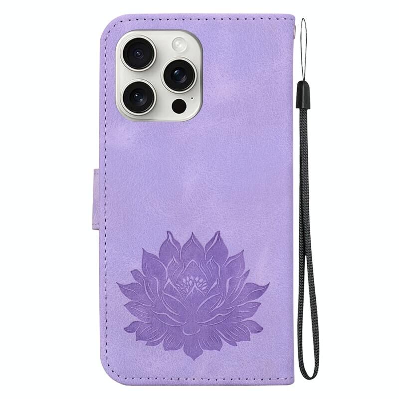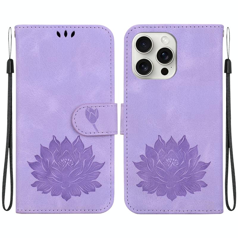 For iPhone 16 Pro Max Lotus Embossed Leather Phone Case(Purple)