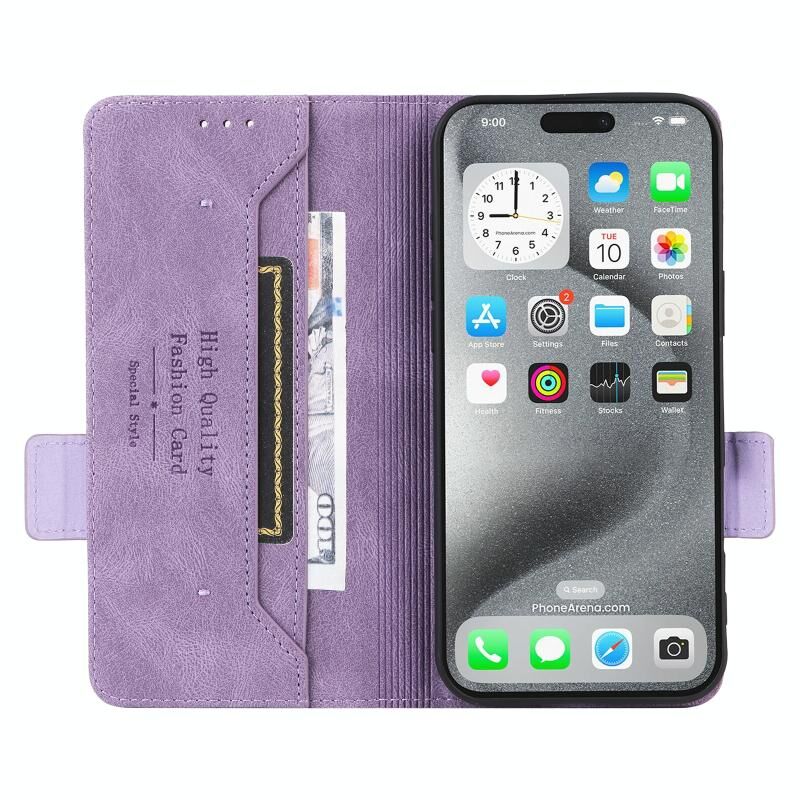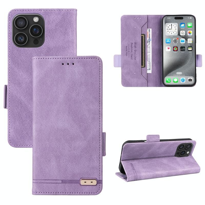 Για iPhone 16 Pro Max Μαγνητικό κούμπωμα Δερμάτινη θήκη τηλεφώνου (μωβ)