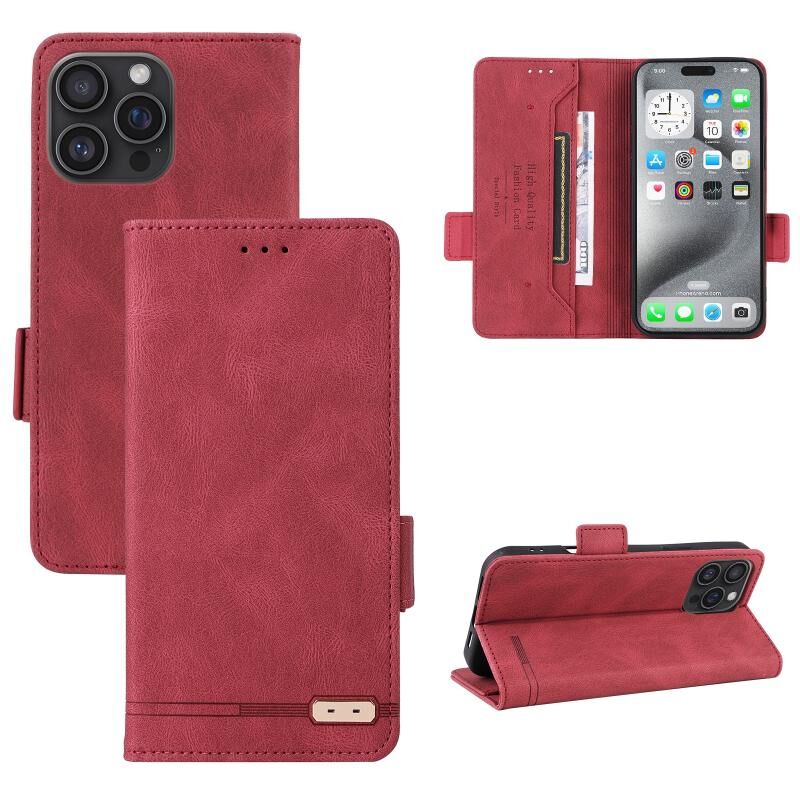 Για iPhone 16 Pro Max Μαγνητικό κούμπωμα Δερμάτινη θήκη τηλεφώνου (κόκκινο)