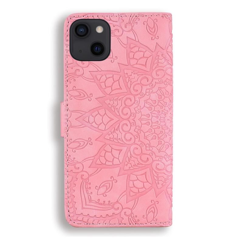 For iPhone 16 Pro Max Mandala Embossed Dual-Fold Calf Leather Phone Case(Pink)