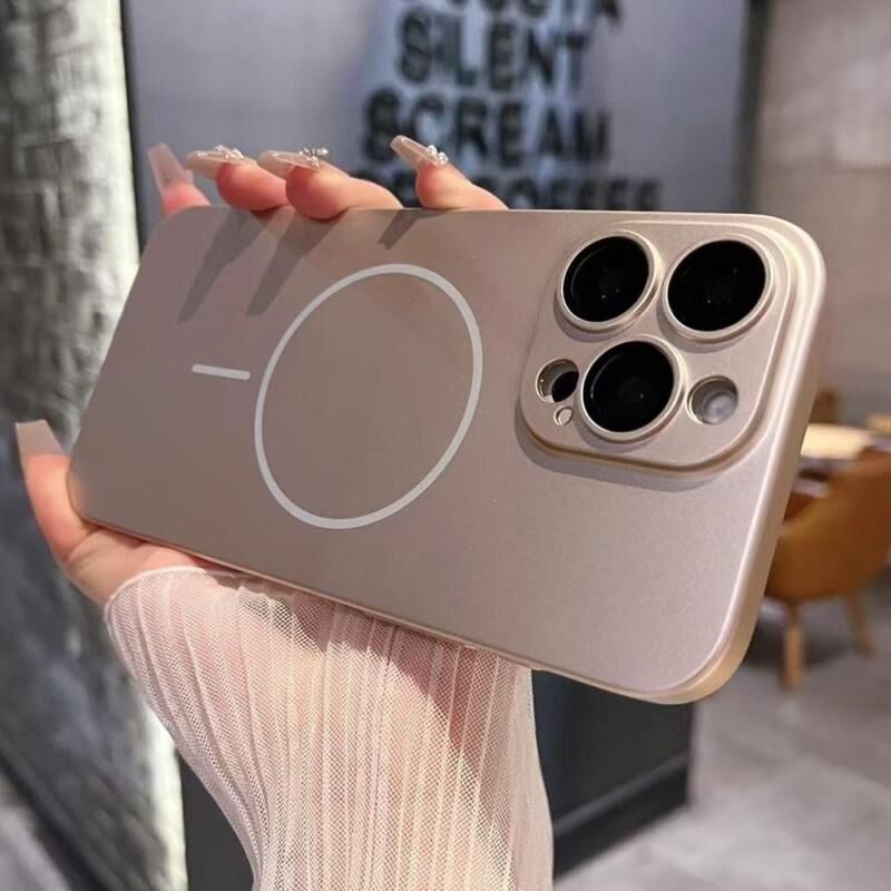 For iPhone 16 Pro Max Matte Frosted Fine Circle MagSafe Lens Protection Phone Case(Desert Gold)
