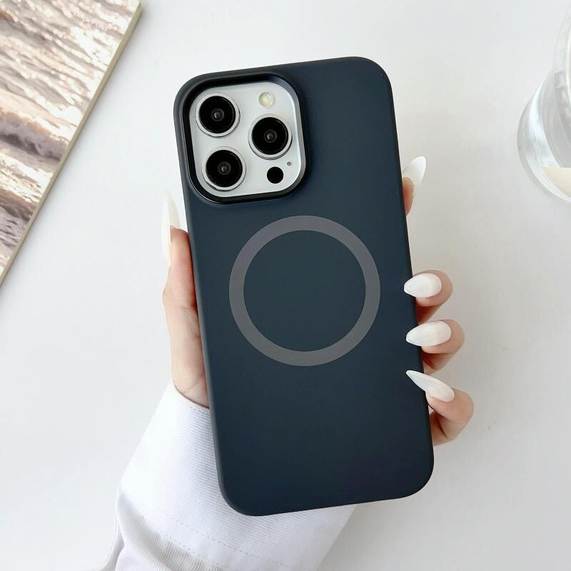 For iPhone 16 Pro Max Metal Frame Liquid Silicone MagSafe Phone Case(Graphite Black)
