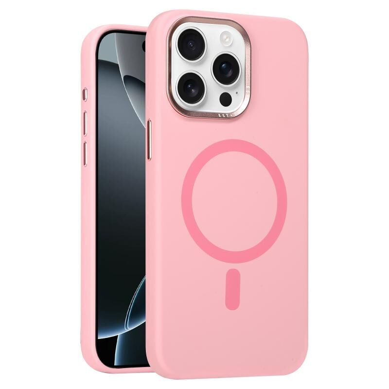 For iPhone 16 Pro Max Metal Lens Frame Liquid Silicone MagSafe Phone Case(Rose Pink)