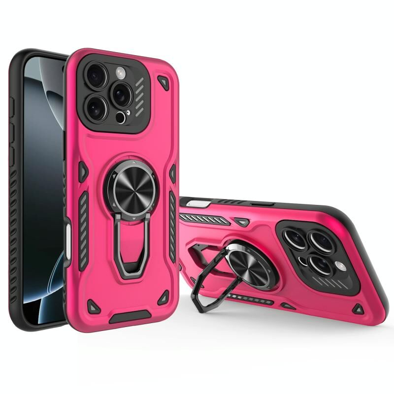 Θήκη τηλεφώνου με μαγνητική βάση περιστρεφόμενου μεταλλικού βραχίονα για iPhone 16 Pro Max (TPU + PC) (Ροζέ κόκκινο)