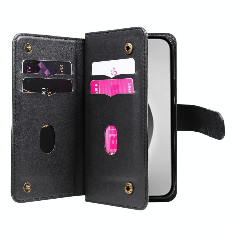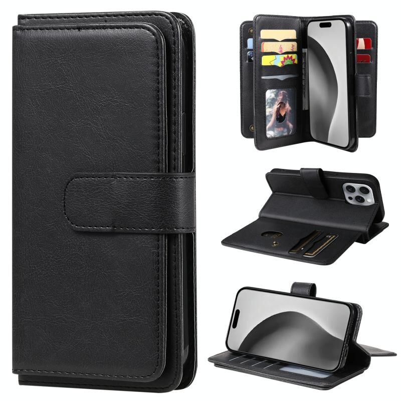 Θήκη τηλεφώνου πολλαπλών λειτουργιών για iPhone 16 Pro Max, Δερμάτινο πορτοφόλι με 10 υποδοχές για κάρτες (Μαύρο)