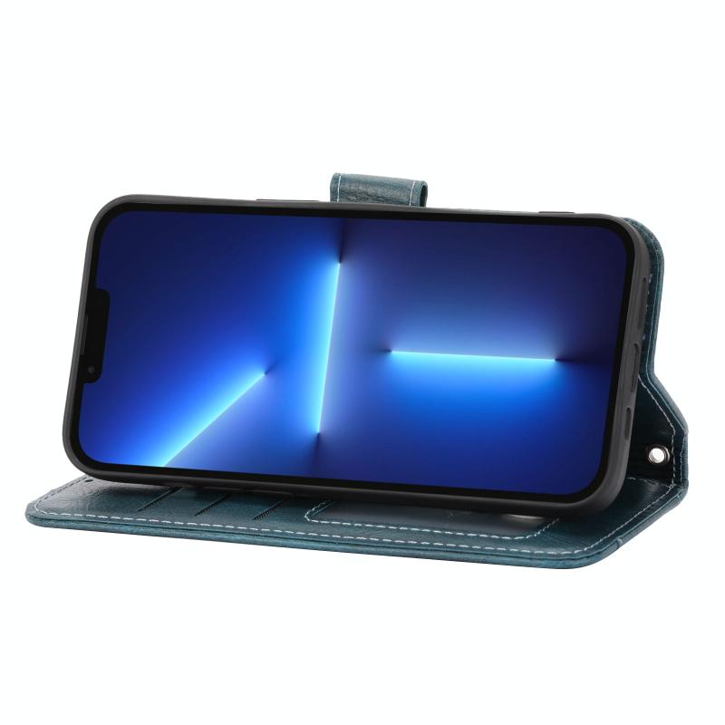 For iPhone 16 Pro Max Oil Skin Zipper Wallet Leather Phone Case(Blue)