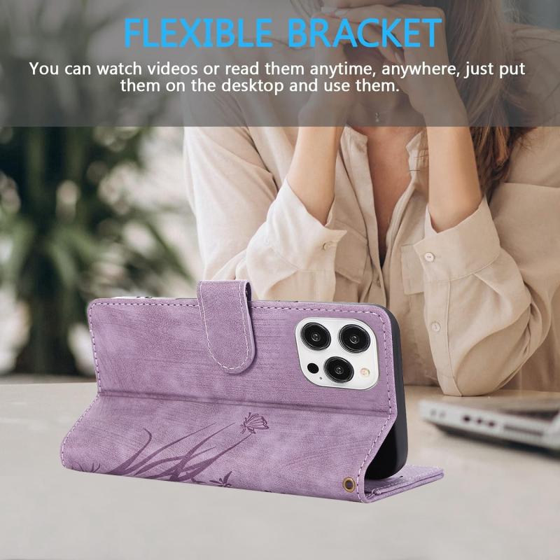 For iPhone 16 Pro Max Orchid Butterfly Embossed Leather Phone Case(Purple)