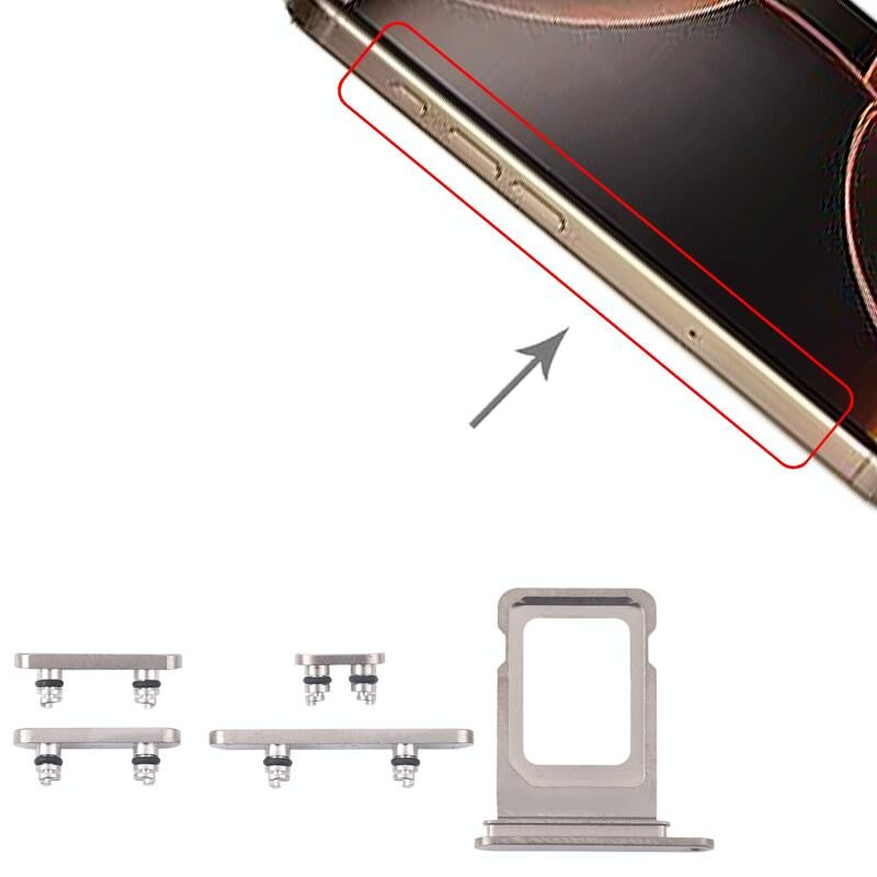 For iPhone 16 Pro Max Original SIM Card Tray + SIM Card Tray + Side Keys (Silver)
