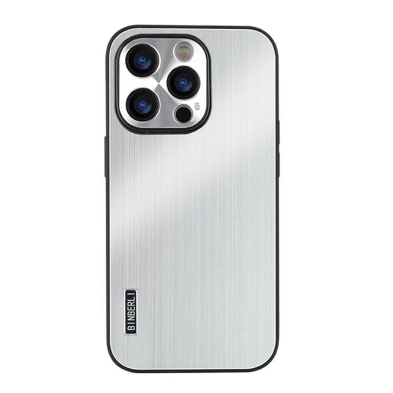 For iPhone 16 Pro Max PC Hybrid Aluminum Alloy Brushed Shockproof Phone Case(Silver)