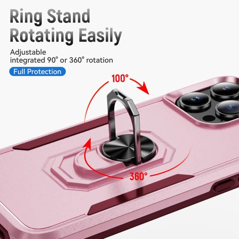Θήκη κινητού Pioneer Armor Heavy Duty PC + TPU με βάση στήριξης για iPhone 16 Pro Max (Λευκό+Ροζ)