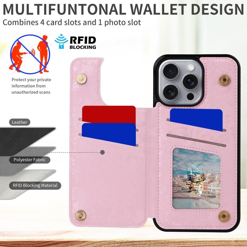 Θήκη τηλεφώνου με διπλή αγκράφα, αντι-κλοπής RFID, εκτυπωμένη για iPhone 16 Pro Max (ρόδινο)