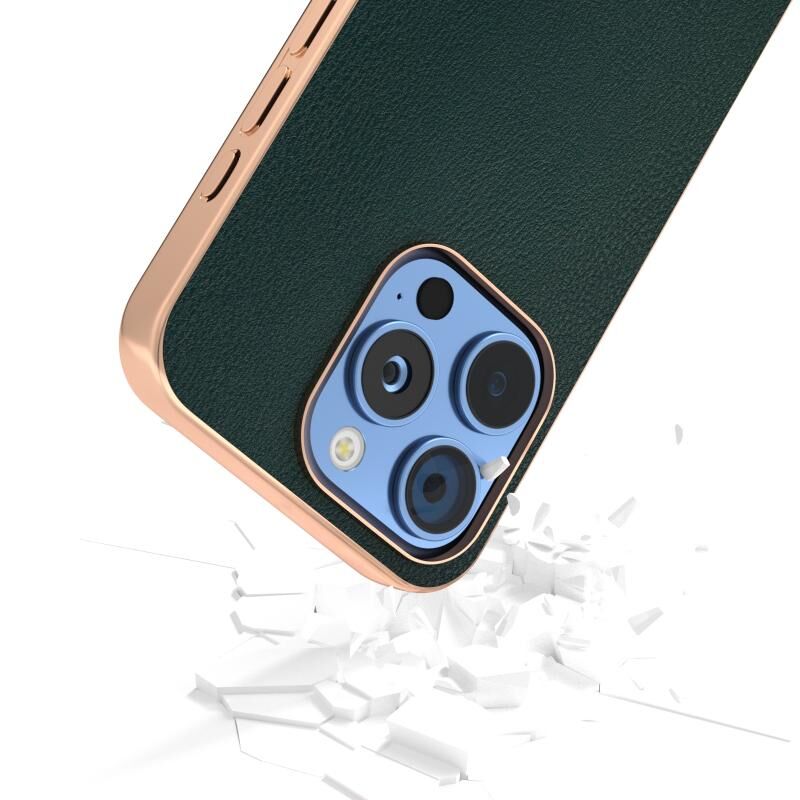 Θήκη τηλεφώνου πλήρους κάλυψης για iPhone 16 Pro Max από δερματίνη PU με ηλεκτρολυτικό πλαίσιο (πράσινο)