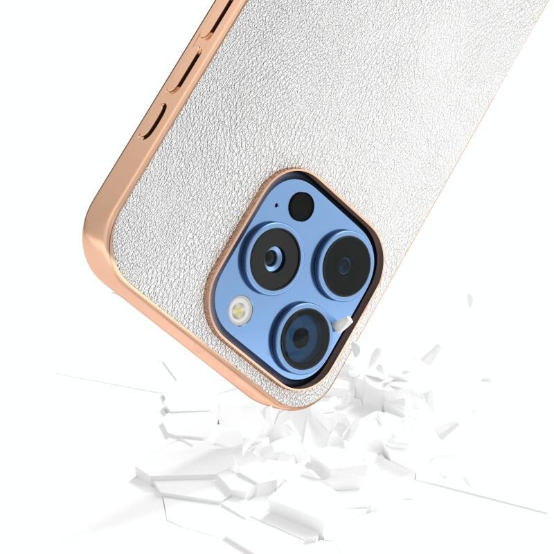 Θήκη τηλεφώνου πλήρους κάλυψης για iPhone 16 Pro Max από δερματίνη PU με ηλεκτρολυτικό πλαίσιο (Πορτοκαλί)