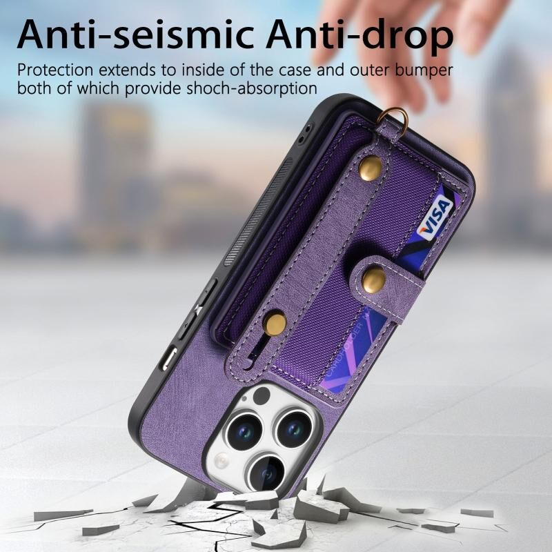 For iPhone 16 Pro Max Retro Cross Wristband Wallet Leather Back Phone Case(Purple)