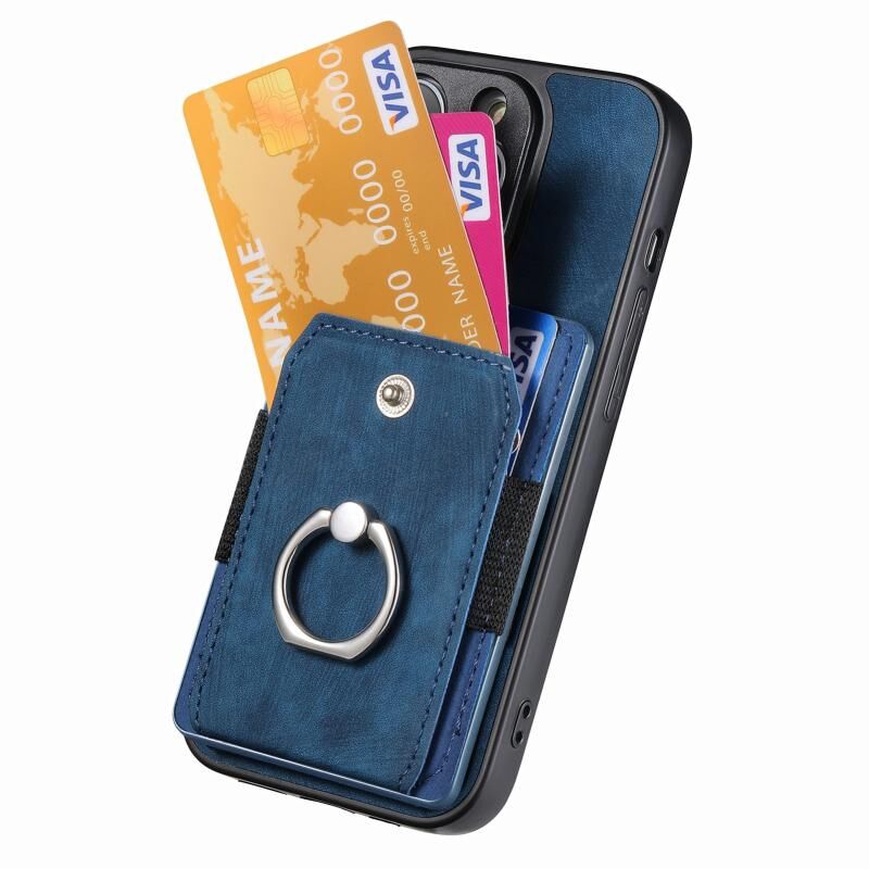 Θήκη κινητού τηλεφώνου με κάρτες και δακτύλιο για iPhone 16 Pro Max, με ρετρό υφή (Ροζ)