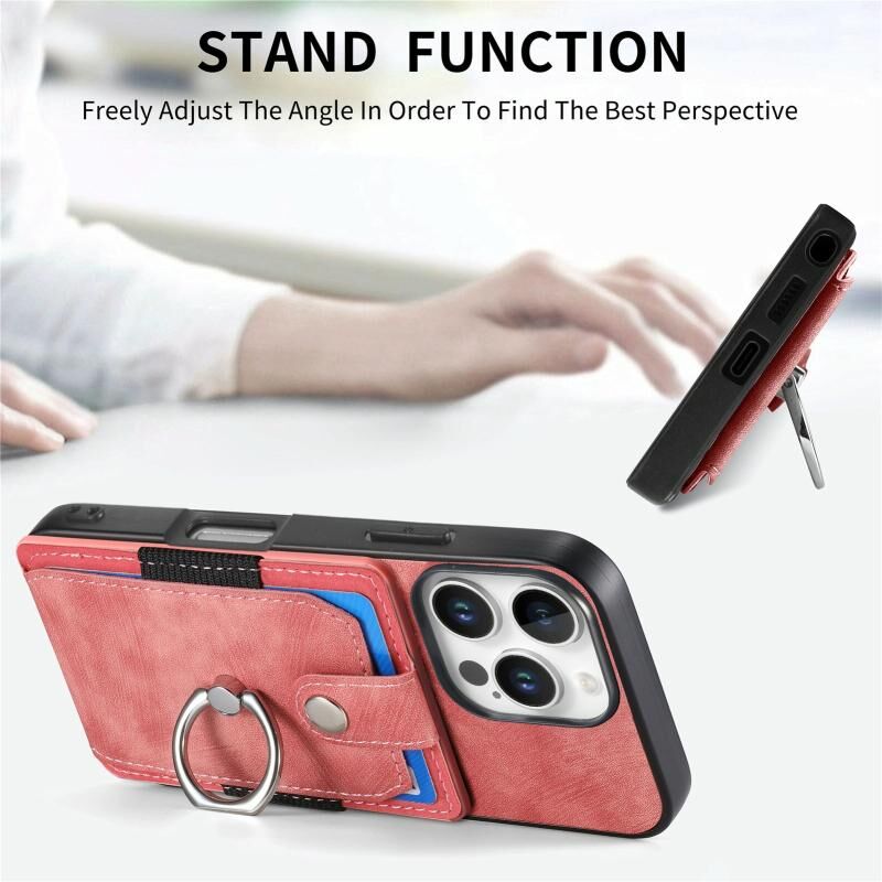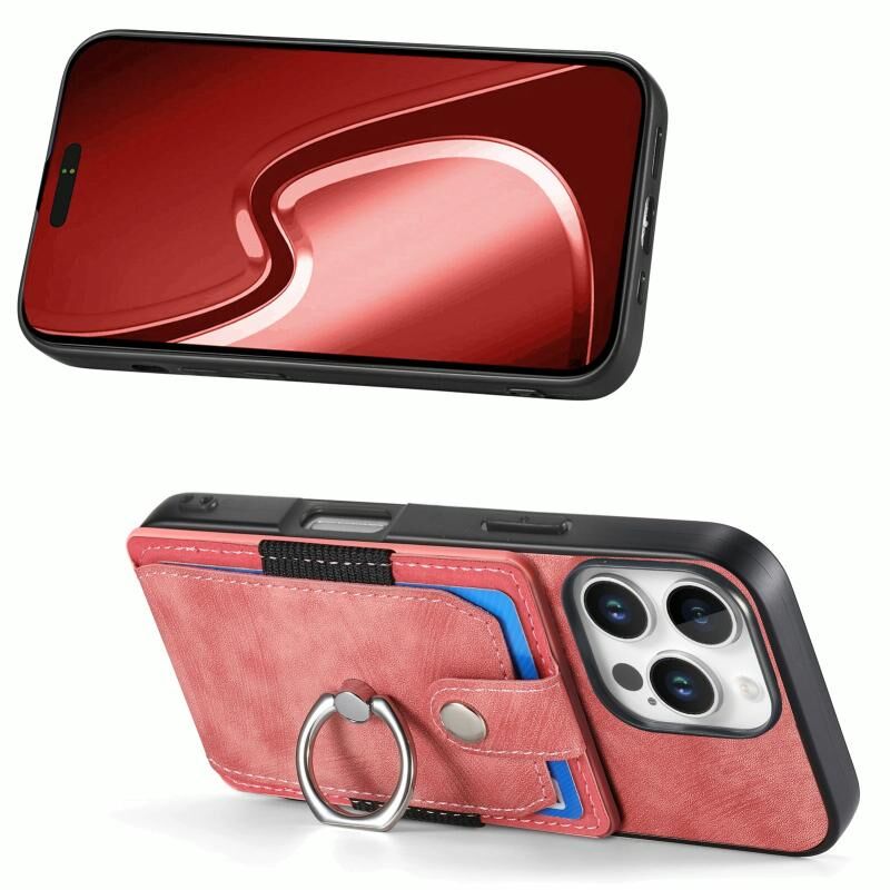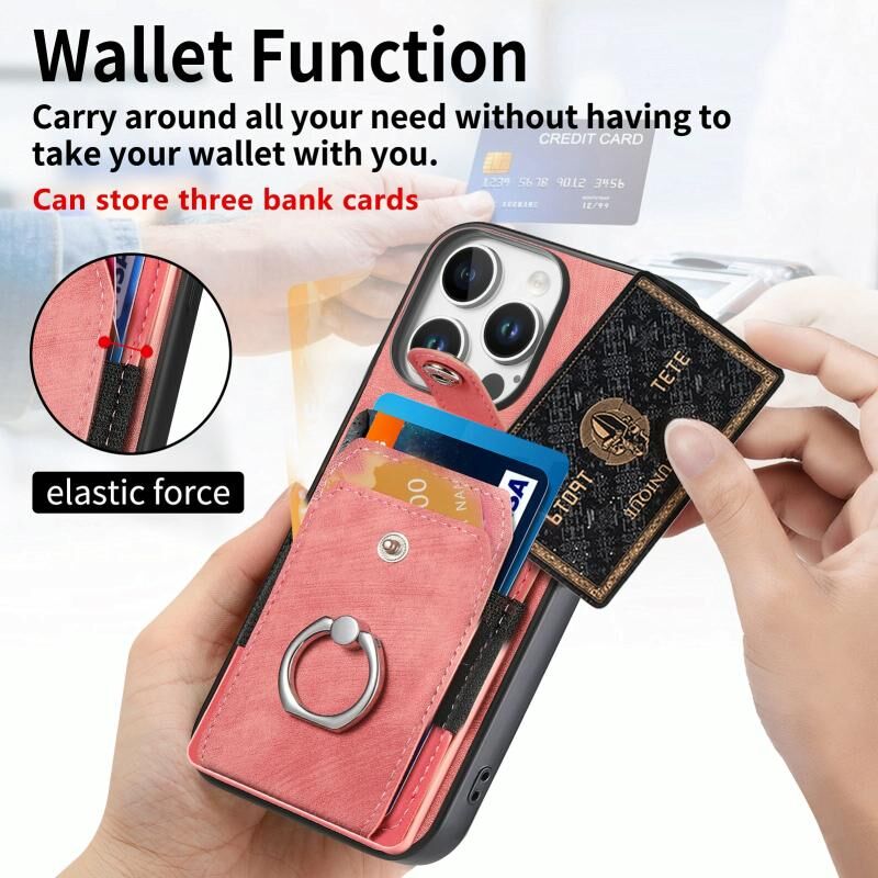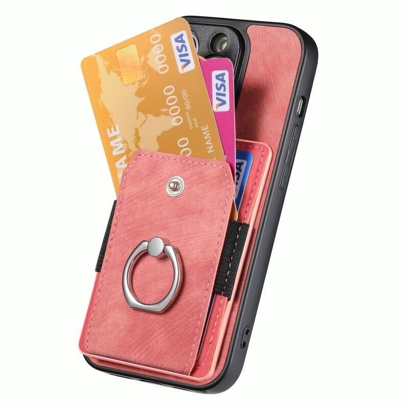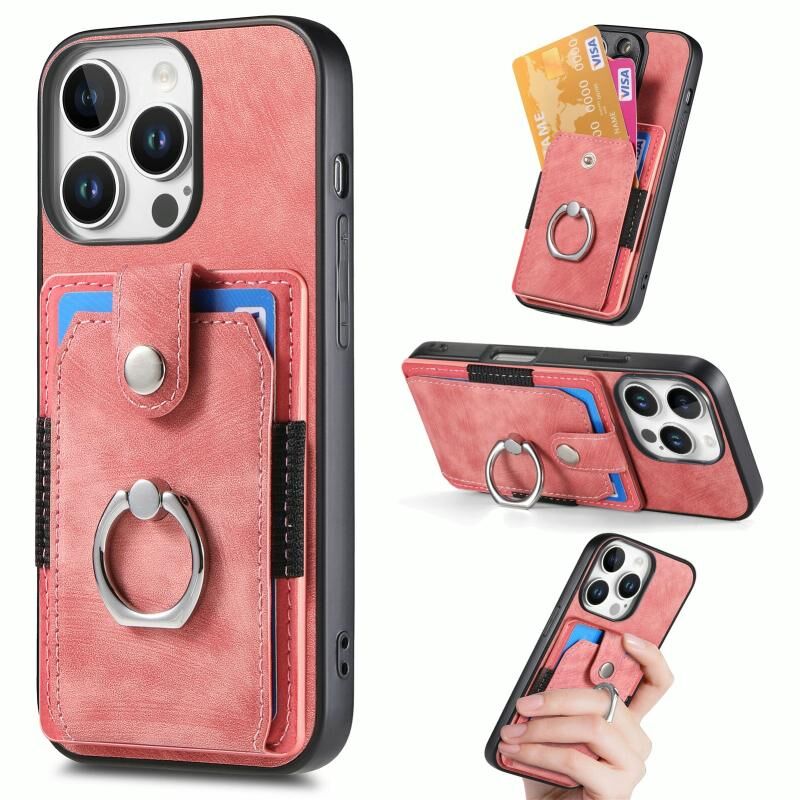 Θήκη κινητού τηλεφώνου με κάρτες και δακτύλιο για iPhone 16 Pro Max, με ρετρό υφή (Ροζ)