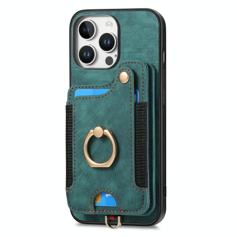 Θήκη τηλεφώνου πορτοφόλι με πολλές κάρτες και δακτύλιο, με ρετρό αίσθηση για iPhone 16 Pro Max (Ροζ)